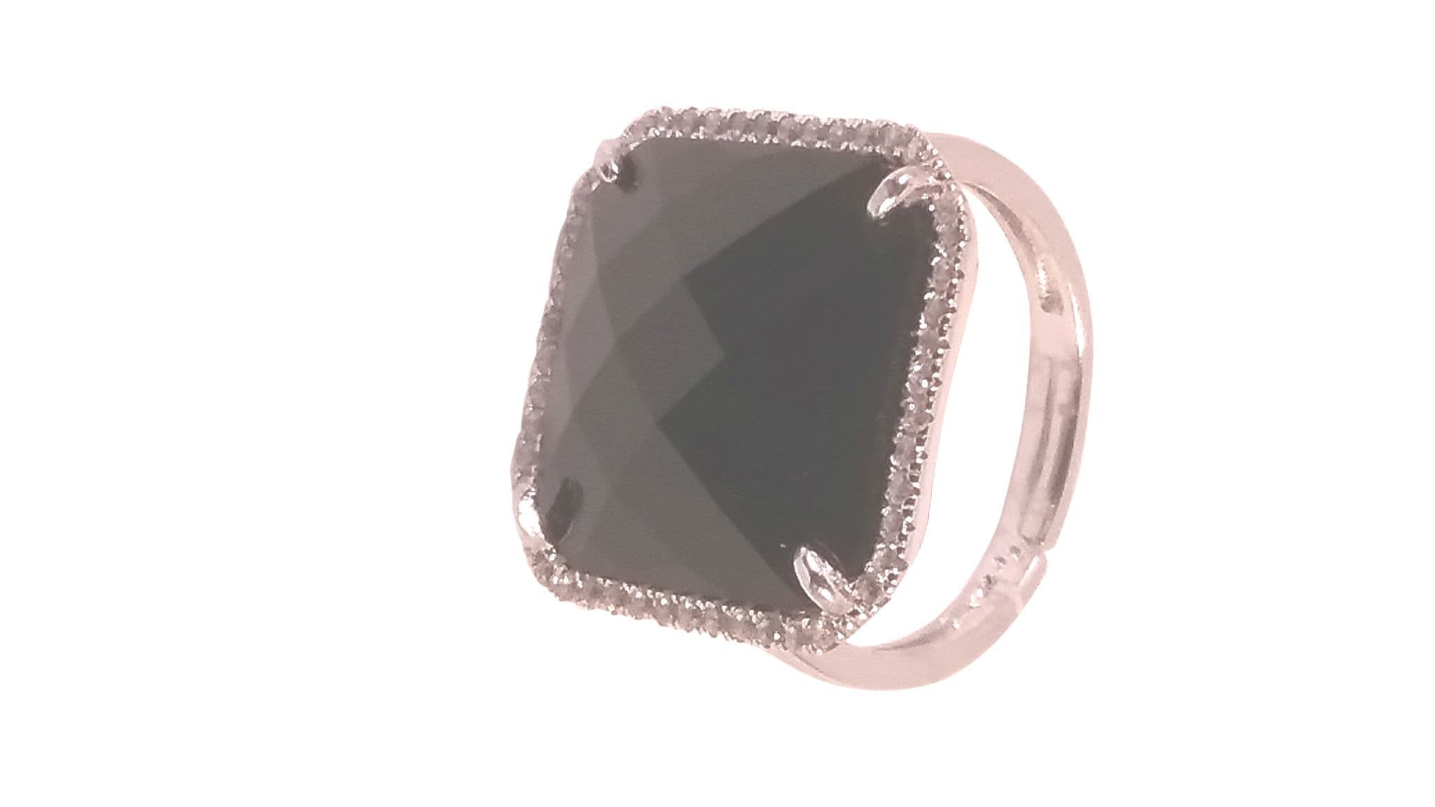 Hilda Square Silver Stone Ring