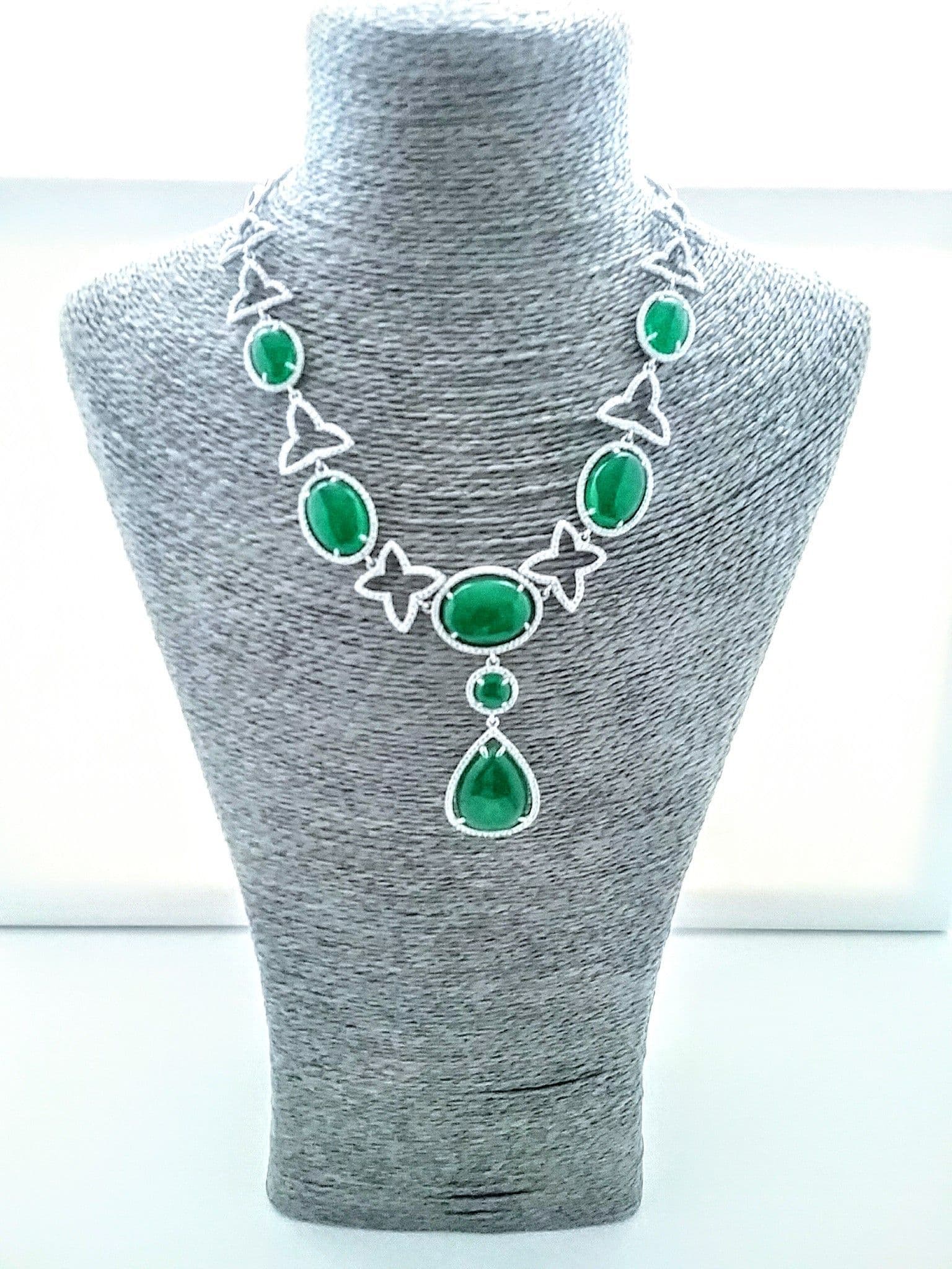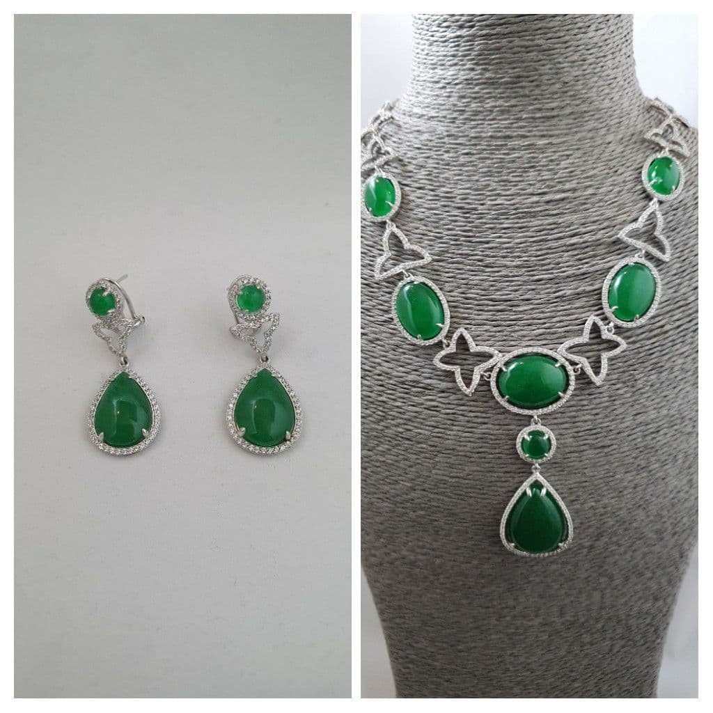 Green Stone Silver Necklace Set